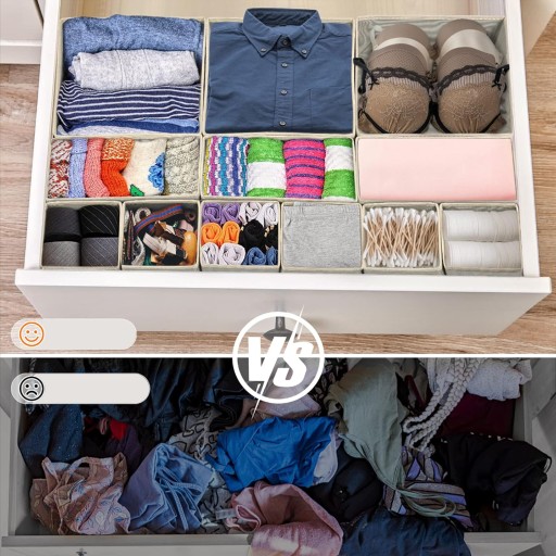 Efekt PRZED i PO zastosowaniu organizera w szufladzie: