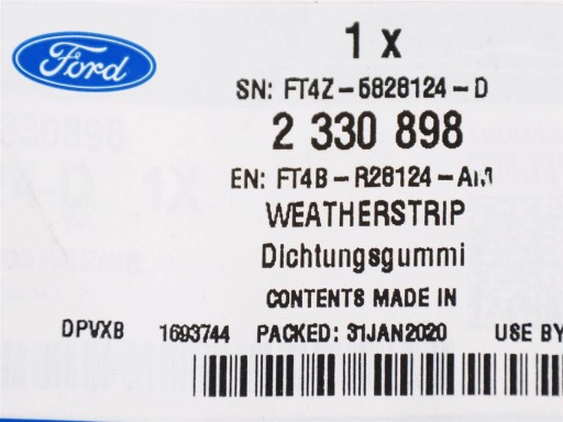 ПРОКЛАДКА ЗАДНЕЙ ПРАВОЙ ДВЕРИ EDGE 18- FORD OE _ 2330898 _ FT4B-R28124-AM