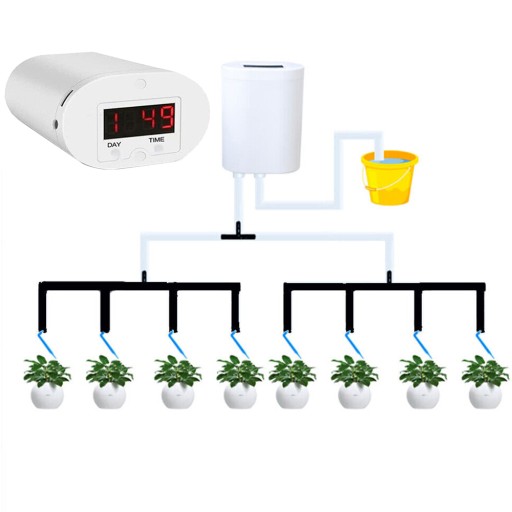 - - Nie wymaga kranu i wspomaga ochronę przed niedoborem wody. Może automatycznie podlewać rośliny i przestać działać po wyczerpaniu wody, bez uszkodzenia pompy i bez niebezpieczeństwa.