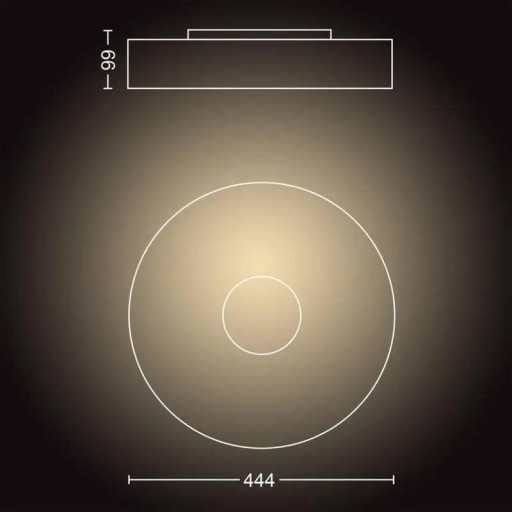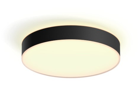 Philips Hue White ambiance Lampa sufitowa Enrave medium. Model: Inteligentne światło sufitowe, Kolor produktu: Czarny, Standardowe rozwiązania komunikacyjne: Bluetooth. Klasa wydajności energetycznej: F, Napięcie żarówki: LED, Napięcie wejściowe AC: LED. Szerokość produktu: 381 mm, Głębokość produktu: 381 mm, Wysokość produktu: 84 mm. Ilość na paczkę: 1 szt.
