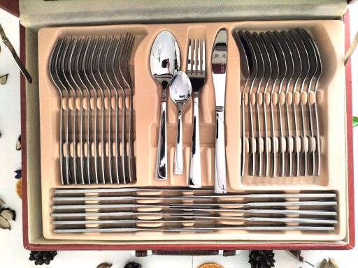 Elegancki Komplet Sztućców 12-osobowych w Wyjątkowej Walizce - Zestaw 72 Elementy z Połyskiem❤️❤️