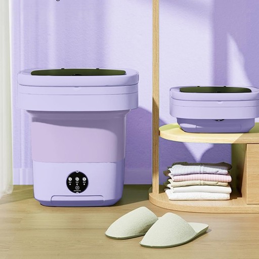 - ✔️ Tę małą pralkę zaprojektowano tak, aby można ją było złożyć do małej walizki i ułatwić transport. Kiedy chcesz wyprać ubrania, po prostu rozłóż pralkę i włóż ubrania do środka.