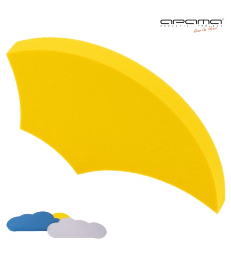 Oferujemy Państwu unikalny akustyczny panel dekoracyjno-wygłuszający w kształcie słońca wyglądającego zza chmur - doskonałe rozwiązanie dla poprawy jakości dźwięku w Twoim pomieszczeniu!