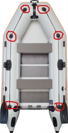 Służy zamocowaniu linki na potonie. Sam uchwyt przykleja się za pomocą kleju do burty.