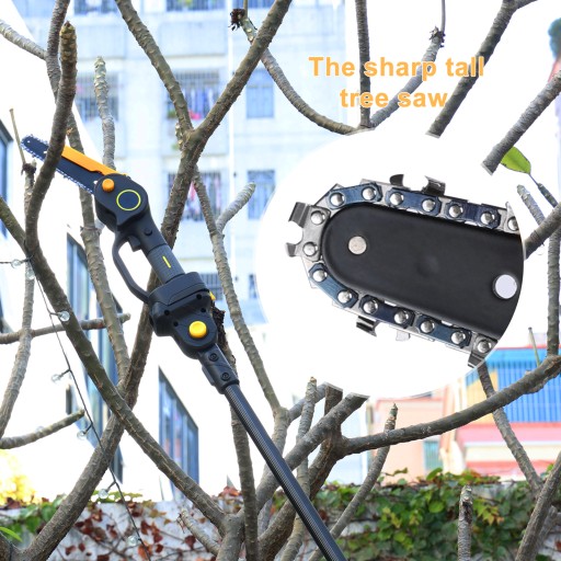 Bezprzewodowa pilarka łańcuchowa ma wiele nowych funkcji. Do tej ręcznej pilarki łańcuchowej można podłączyć drążek przedłużający, co pozwala na wydłużenie go do 4,9-7,5 stóp w celu przycinania wysokich gałęzi.