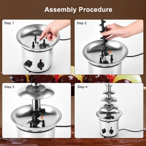Cecha: 1. ELEGANCKI DESIGN: Ta fontanna czekoladowa wykonana jest ze stali nierdzewnej i ma 4-poziomową konstrukcję, która zachwyci Twoich gości, dodając jednocześnie elegancji i stylu każdemu specjalnemu wydarzeniu.