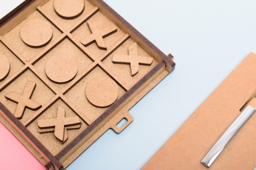 Pięknie zaprojektowane pudełko z elementami gry kółko krzyżyk z tematycznym nadrukiem z pewnością będzie wywoływać uśmiech u osoby obdarowanej.