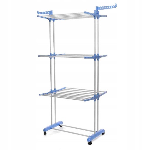 Suszarka jest składana, a więc gdy nie jest nam potrzebna to zajmuje niewiele miejsca. Świetnie nada się w pomieszczeniach o ograniczonej przestrzeni. Idealna do łazienek a nawet balkonów.