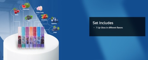 Ten zestaw zawiera zachwycającą gamę kolorów i smaków błyszczyków do ust, oferując niekończącą się zabawę i emocje. Od lodowatej borówki po mroźną truskawkę.Twoje dziecko może odkrywać różne odcienie i zapachy inspirowane ulubionymi postaciami z Krainy Lodu.