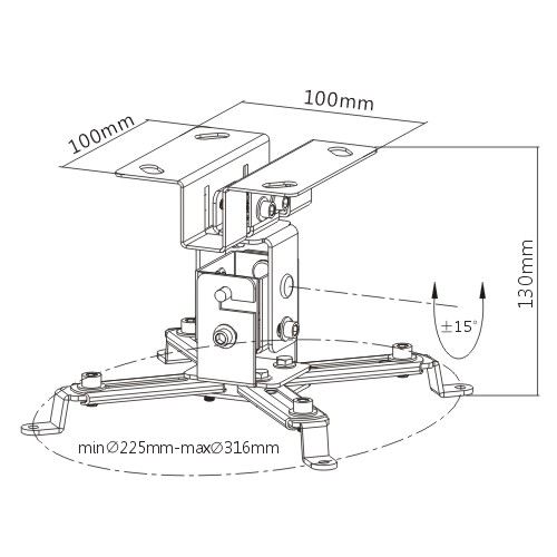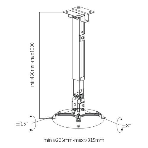 Uchwyt umożliwia regulację kąta pochylenia projektora w każdym kierunku. W zestawie znajduje się komplet śrub do montażu.