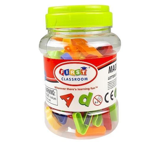 CYFERKI MAGNETYCZNE 56 SZTUK W przeźroczystym słoiczku znajduje się 56 sztuk literek, cyferek oraz znaków magnetycznych do nauki tabliczki mnożenia. Słoiczek zakręcany przykrywką z ruchomym uchwytem. Wymiary jednej literki 3 cm Symbole magnetyczne to zabawka przeznaczona dla dzieci powyżej 3 roku życia. Zabawka łatwo wyczyścisz wilgotną ściereczką. Zabawka wykonana z dobrej jakości plastiku. SKŁAD ZESTAWU: Po kilka sztuk kompletów cyferek od 0 do 9 Symbole x, ÷, ?, -, = ZABAWKA WSPIERA: Rozwój zmysłu słuchu Umiejętność kreatywnej zabawy Stymuluje zmysł wzorku Kształtowanie małej motoryki