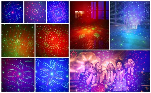 Światła imprezowe, 60 kombinacji wzorów, siedem kolorów tła,