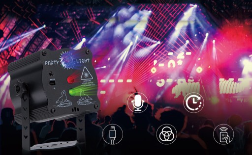 Światła dyskotekowe Światła imprezowe Światła mogą zmieniać się w zależności od rytmu muzyki lub dłoni dzięki wydajnemu czujnikowi dźwięku.