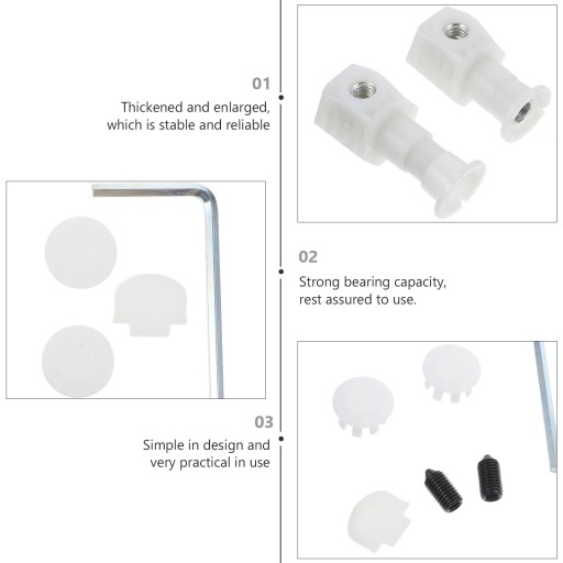 Ten zestaw śrub toaletowych jest solidny i wytrzymały, który może wytrzymać długotrwałe użytkowanie. Zawiera materiał nylonowy, który ma wysoką trwałość, niełatwy do odkształcenia. Dobra jakość wykonania, zapewnia praktyczność. Ten zestaw śrub toaletowych sprawi, że naprawa i instalacja będą łatwiejsze i płynniejsze.