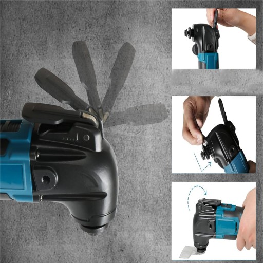 Wielofunkcyjna głowica narzędziowa jest kompatybilna z większością brzeszczotów dostępnych na rynku, a konstrukcja klamry szybkiego montażu sprawia, że montaż brzeszczotu jest łatwy i szybki, co pozwala zaoszczędzić cenny czas i pozwala skupić się bezpośrednio na projekcie.