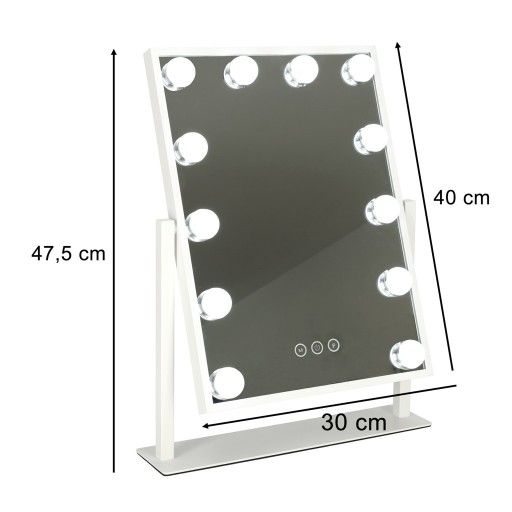 LUSTERKO DO MAKIJAŻU KOSMETYCZNE LED STOJĄCE Z 12 ŻARÓWKAMI USB 30X40CM