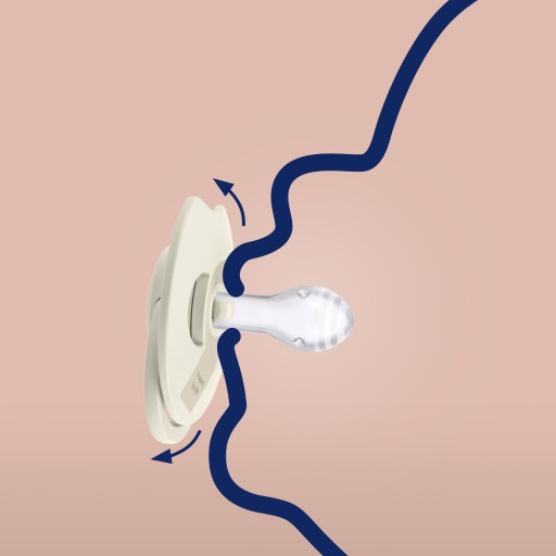 Dynamiczny smoczek, dzięki unikalnej budowie z silikonu o różnej grubości, rozciąga się i kurczy zgodnie z rytmem ssania dziecka. Dzięki temu chroni jego odruch ssania i nie ma niekorzystnego wpływu na karmienie piersią. Kształt gumki jest symetryczny i inspirowany kształtem brodawki sutkowej, by zapewnić dziecku znajome odczucia. Tarczka smoczka ma specjalne wycięcie, by ułatwić oddychanie noskiem i przełykanie śliny podobnie jak przy piersi. Wyprofilowana tarczka jak najmniej przylega do skóry dziecka, co ułatwia swobodny przepływ powietrza i zmniejsza ryzyko podrażnień skóry.