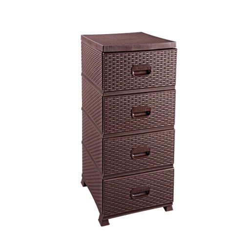 Комод пластиковый шкаф 4 ящика-органайзер для ванной комнаты коричневый