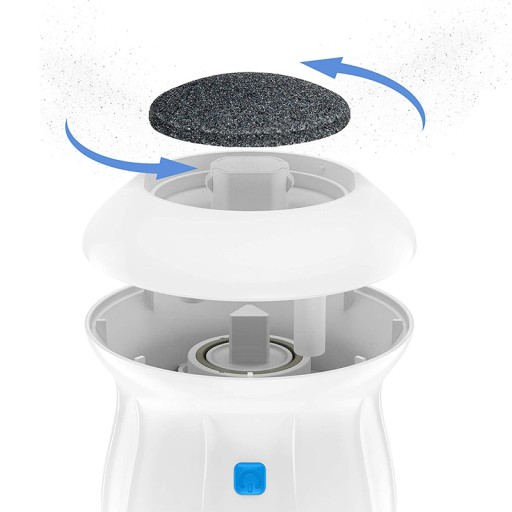 Elektryczna tarka do stóp z obrotową głowicą 360° pozwala na szybkie usunięcie twardej i zrogowaciałej skóry z Twoich pięt. Doskonale sprawdzi się na całej powierzchni stopy.