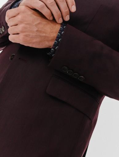Męski bordowy garnitur męski z najnowszej kolekcji Pako Lorente. Modny burgundowy kolor idealnie sprawdzi się w sezonie jesienno-zimowym. Wyróżnia się na tle klasycznej czerni, czy granatu zachowując przy tym styl i elegancję. Kojarzony jest z pewnością siebie oraz kreatywnością. Uszyty z najwyższej jakości mieszanki wełny z poliestrem.