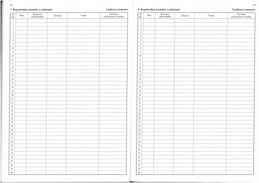 - bezpośrednie kontakty z rodzicami (II semestr)