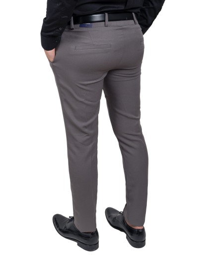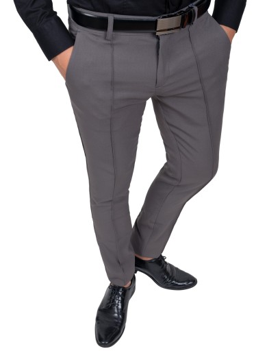 Мужские эластичные строгие брюки с декоративной строчкой — серые — 32