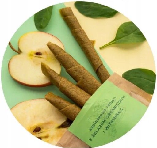 - Rollsy Szpinakowe z Żelazem i wit.C: jabłko, świeży szpinak, witamina C (kwas L-askorbinowy, żelazo organiczne (diglicynian żelaza II).