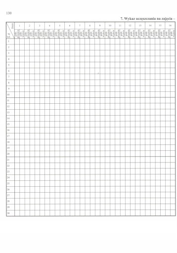 7. Wykaz uczęszczania na zajęcia - miesiąc ........... (na 12 miesięcy)