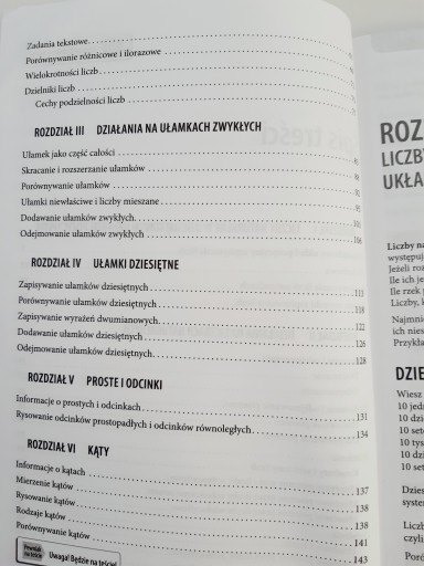 Są tu wszystkie działy, które obejmuje program nauczania danej klasy, oraz liczne, najczęściej pojawiające się na klasówkach, zadania rozwiązane krok po kroku, z objaśnieniami.