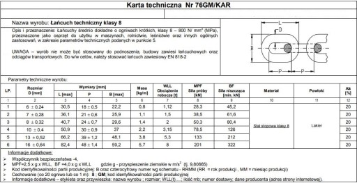 ŁAŃCUCH TECHNICZNY CZARNY 10MM udźwig 3.15T 1kg