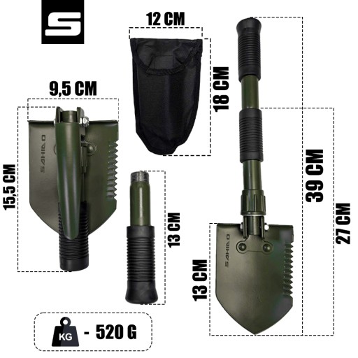 СКЛАДНАЯ ЛОПАТА SAPREKA Sahido SAPER TRAVEL, ЗЕЛЕНАЯ КИРКА, КРЫШКА ДЛЯ ПИЛЫ