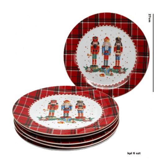 Talerz, Talerzyk, Obiadowy, Deserowy, 6 szt, Zestaw, Komplet, Święta, Boże Narodzenie, Mikołaj, Dziadek do Orzechów