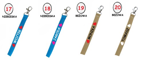 Smycz na klucze z imieniem na nadgarstek - serca