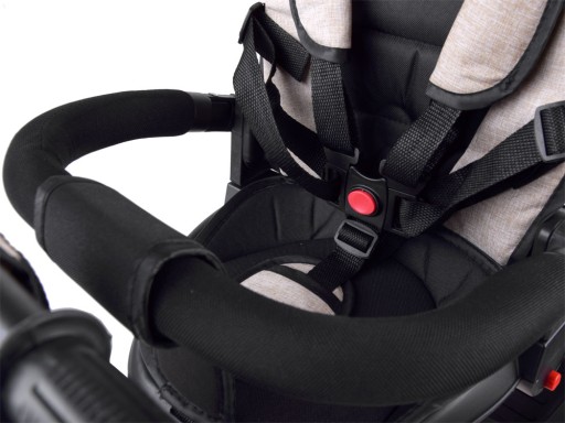 O bezpieczeństwo malucha zadbają także 5-punktowe pasy bezpieczeństwa z wygodnymi szelkami, oraz barierka pokryta miękkim materiałem.