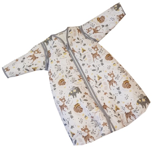 W śpiworku maluszek może spać nawet z gołym nóżkami lub w śpioszkach. Grubość śpiworka w skali tog „2-3”. Rękawki śpiworka są odpinane na suwaczek.