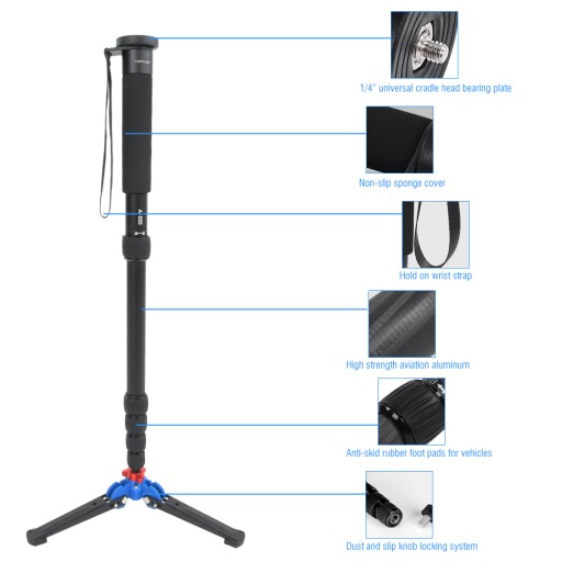 2. Jest mały, przenośny i wyposażony w pasek na rękę, który pozwala również używać go jako laski wspinaczkowej do fotografii podróżniczej.