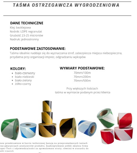 Taśma ostrzegawcza wygrodzeniowa biało-czerwona to niezbędny element przy zabezpieczaniu różnego rodzaju miejsc niebezpiecznych oraz wyznaczaniu stref zamkniętych. Wykonana z trwałego materiału LDPE, gwarantuje odporność na warunki atmosferyczne oraz wytrzymałość, co czyni ją idealnym rozwiązaniem zarówno do użytku wewnętrznego, jak i zewnętrznego.