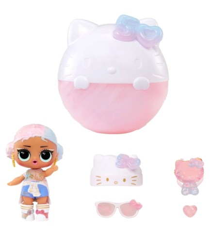 Zawartość: 1x L.O.L. Niespodzianka! Uwielbia lalkę Hello Kitty Tots Crystal Cutie, zawiera strój i akcesoria, 1x naklejkę
