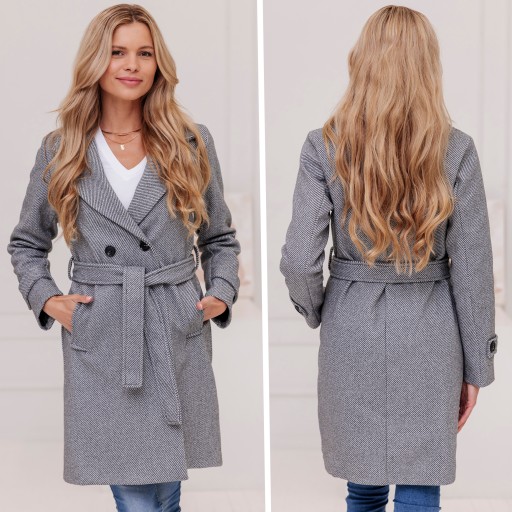 PRĄŻKOWANY PŁASZCZ Z PASKIEM PRZEJŚCIOWY-ZIMOWY