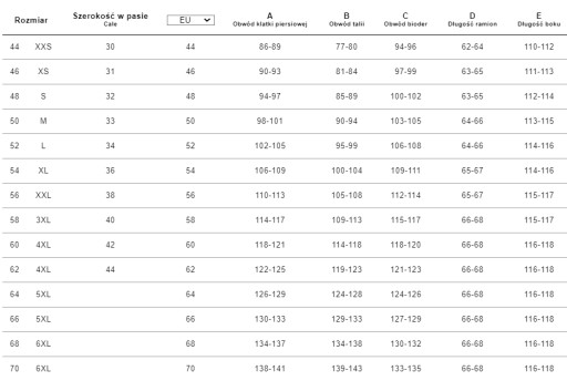 *Tabela rozmiarów jest poglądowa i nie stanowi podstawy do reklamacji towaru!
