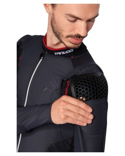 Buzer motocyklowy VANUCCI VXP-1 wykonany z wysokiej jakości materiałow: 92%poliamid, 8%elastan, dzięki temu jest wygodny i bezpieczny. Posiada odpinane rękawy-możliwość noszenia jako kamizelka z ochraniaczami.