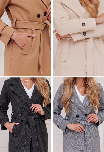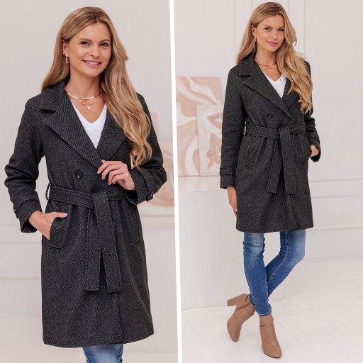 PRĄŻKOWANY PŁASZCZ Z PASKIEM PRZEJŚCIOWY-ZIMOWY