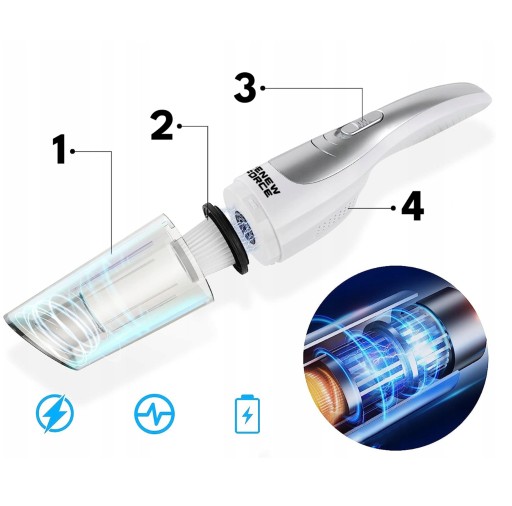 ✅Poręczny idealnie nadaje się do sprzątania miejsc gdzie inne odkurzacze nie mają dostępu. Wystarczy podładować urządzenie i gotowe! Możesz bezproblemowo zadbać o czystość i komfort w swoim otoczeniu.