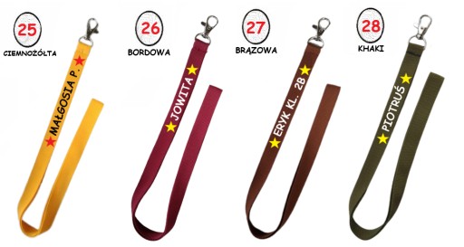 * smycz w wielu kolorach do wyboru, m.in. czarnym, białym, błękitnym, bordowym, zielonym, czerwonym, żółtym itp.