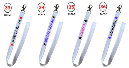 * nadruk z jednej strony (również w różnych wersjach kolorystycznych) - różne opcje do wyboru IMIĘ/NAZWISKO/KLASA, lub dowolny napis