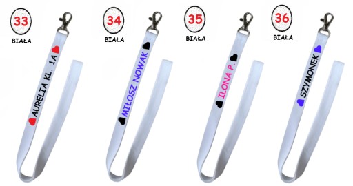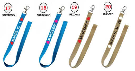 * nadruk z jednej strony (również w różnych wersjach kolorystycznych) - różne opcje do wyboru IMIĘ/NAZWISKO/KLASA, lub dowolny napis