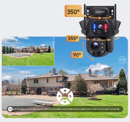 ✅ Dolny obiektyw z obrotową głowicą możemy ustawić w dowolnym kierunku w zakresie 355° lewo prawo i 90° góra dół oraz dodatkowo sterować głowicą kamery bezpośrednio za pomocą telefonu