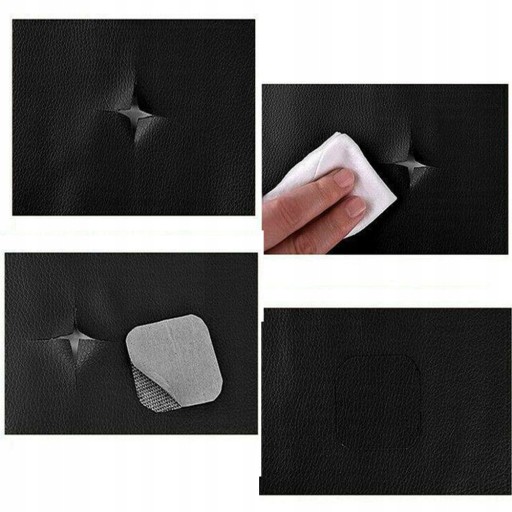 Łatwy w użyciu, wystarczy oderwać papier podkładowy łaty skórzanej i przykleić łatkę naprawczą do dziur, pęknięć lub plam.