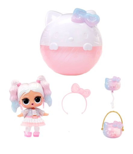 Zawartość: 1x L.O.L. Niespodzianka! Uwielbia lalkę Hello Kitty Tots Miss Pearly, zawiera strój i akcesoria, 1x naklejkę