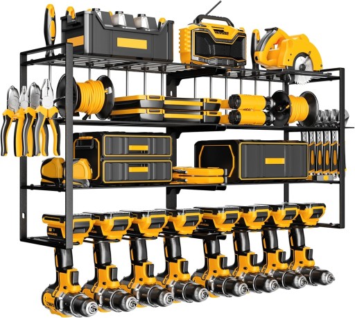 Zorganizuj swoje narzędzia w garażu z praktycznym, montowanym na ścianie regałem na elektronarzędzia. Dzięki tej solidnej szafie w prosty sposób uporządkujesz swoje miejsce pracy, zyskując łatwy dostęp do niezbędnych narzędzi i akcesoriów. Idealne rozwiązanie do garażu, warsztatu lub piwnicy, które pomoże utrzymać porządek i zaoszczędzić miejsce na podłodze.